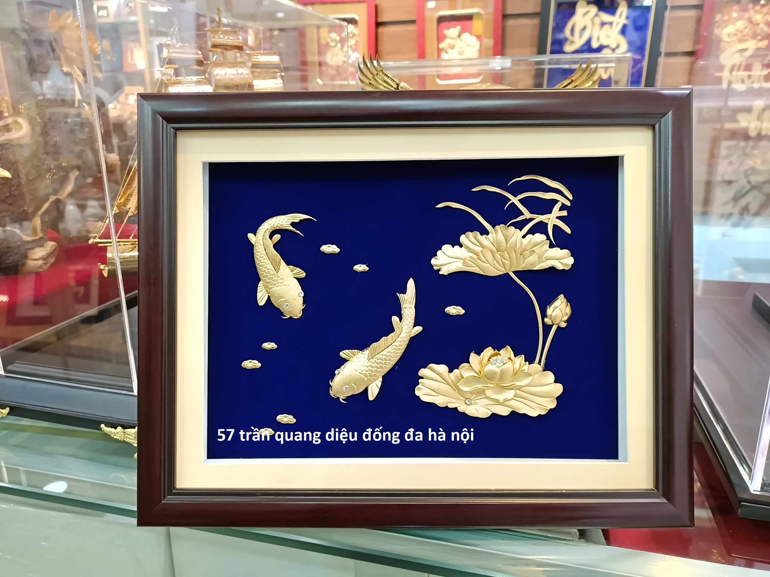 Đĩa cá hoa sen là sự kết hợp độc đáo giữa gốm sứ và vàng 24k. Thiết kế lạ mắt , khắc họa hình ảnh sen và cá chân thực . Cũng là top những món quà tặng sếp được lựa chọn nhiều bởi sự tinh tế của nó .
