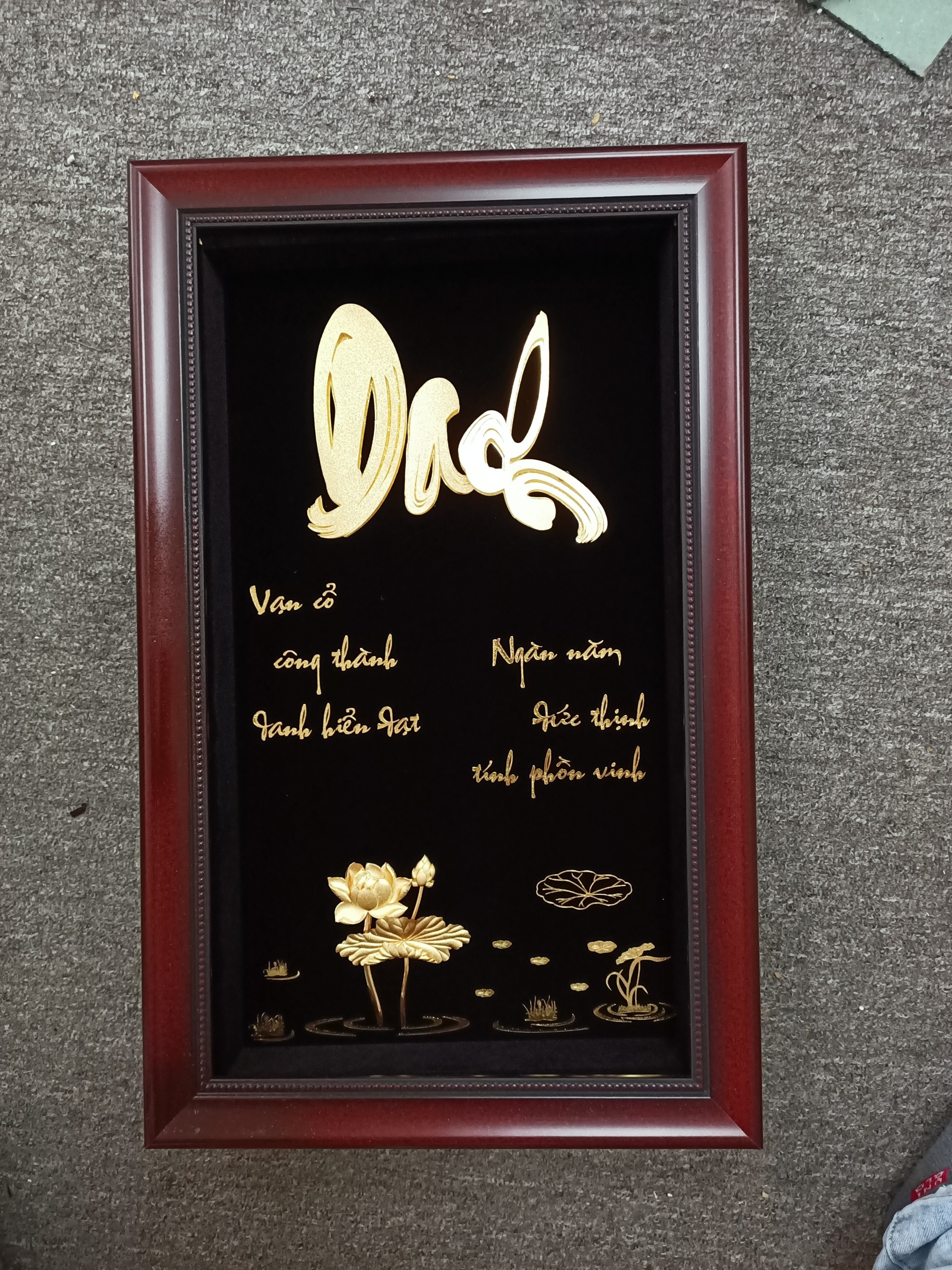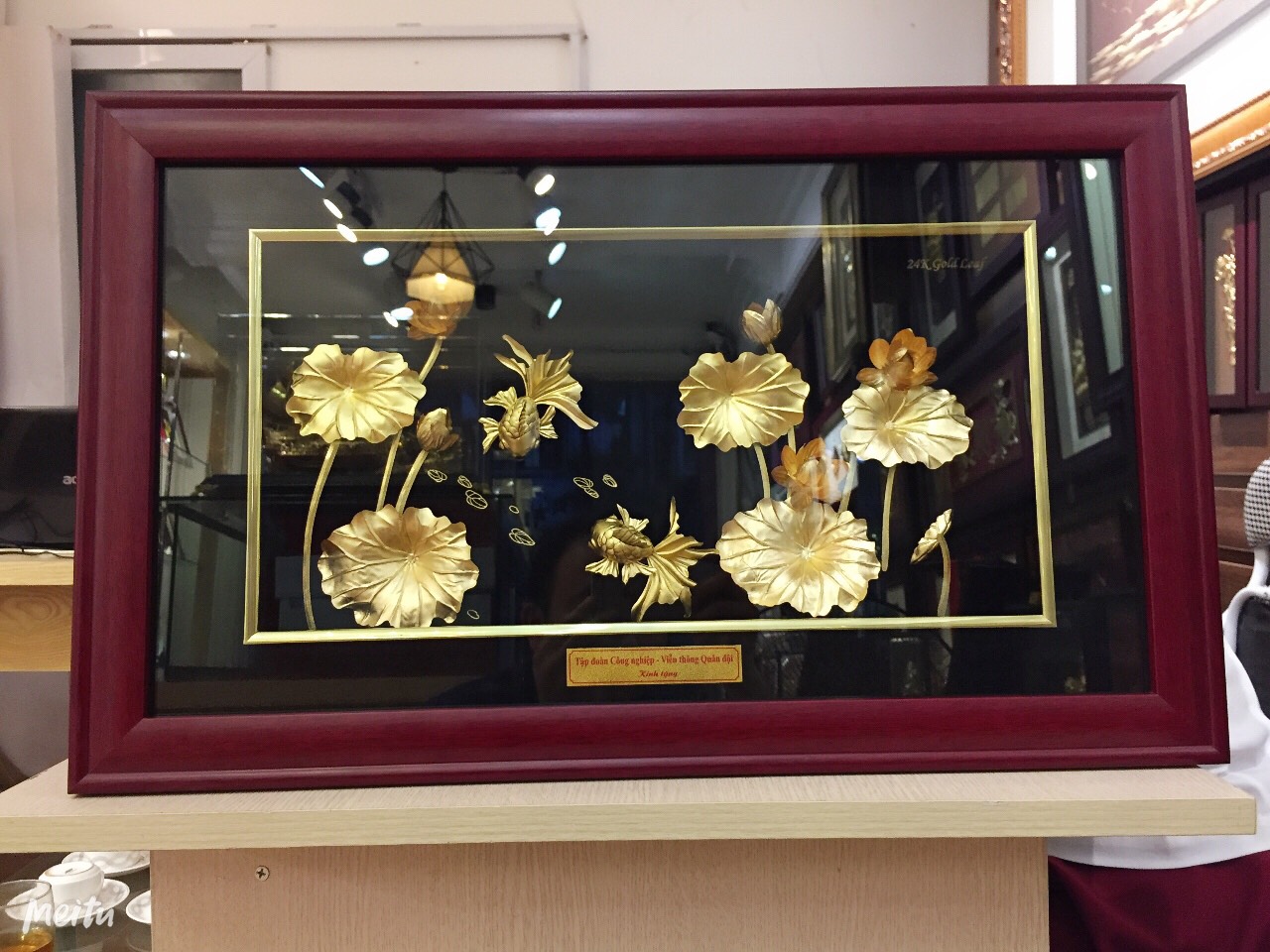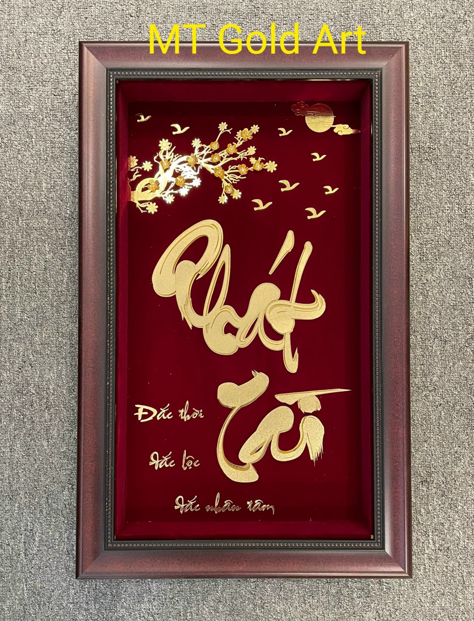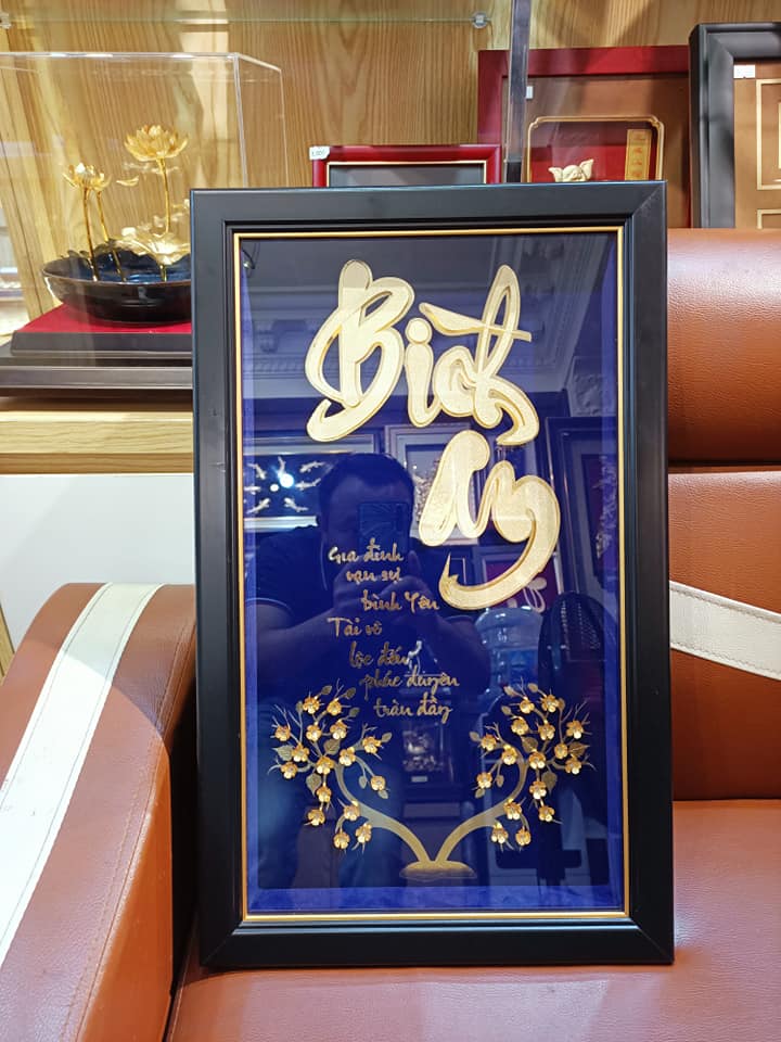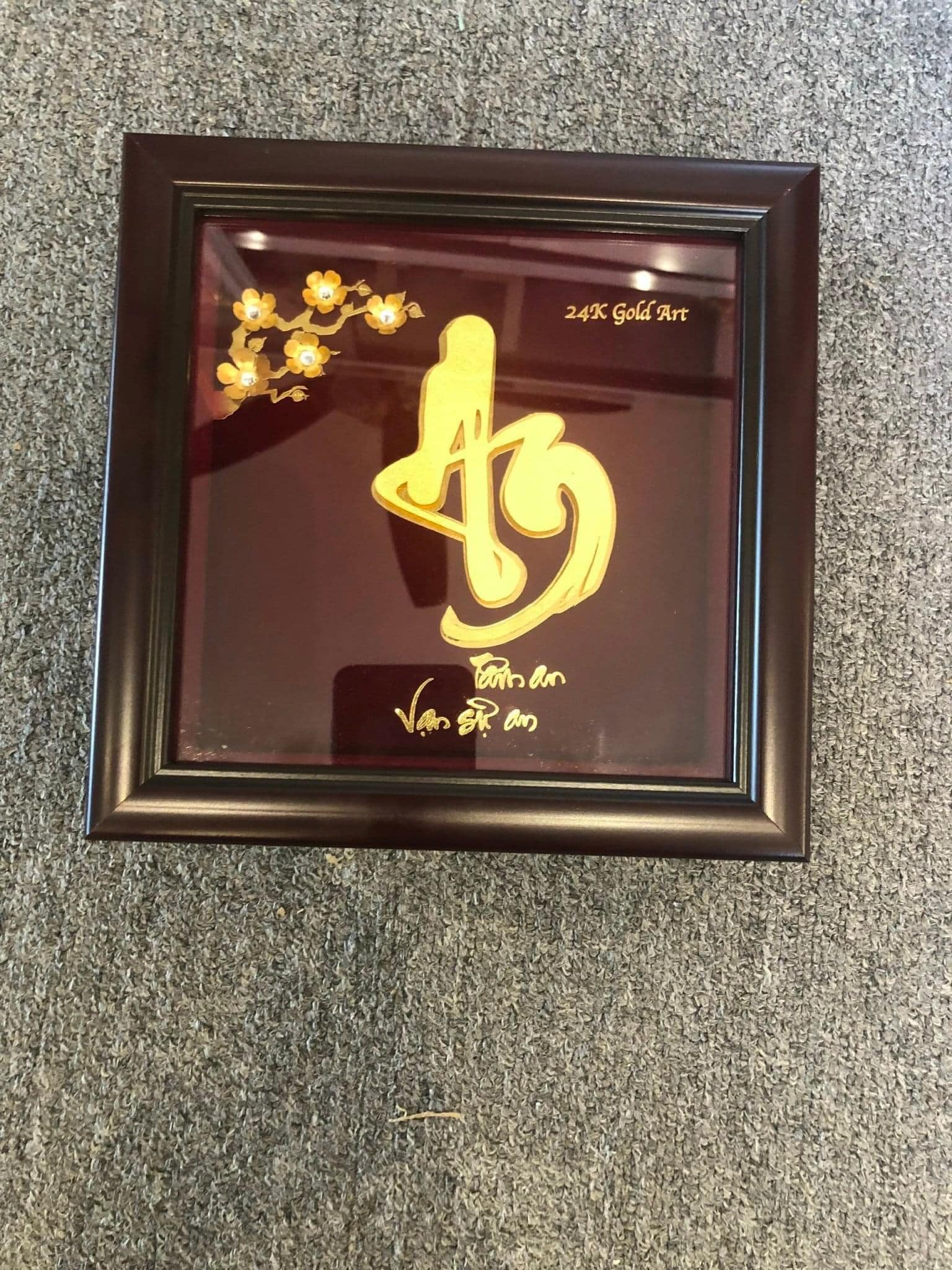 Với thiết kế tinh tế bằng những lá vàng đúc đáy , kèm hình ảnh hoa mai nổi đính đá . Đây là một món quà tặng tân gia đẹp mắt , thiết thực cho gia chủ . Hoa mai luôn mang lại sức sống , vàng thể hiện sự sang trọng . Đây sẽ là món quà được đánh giá cao về sự tỉ mỉ , trưng bày đẹp mắt .