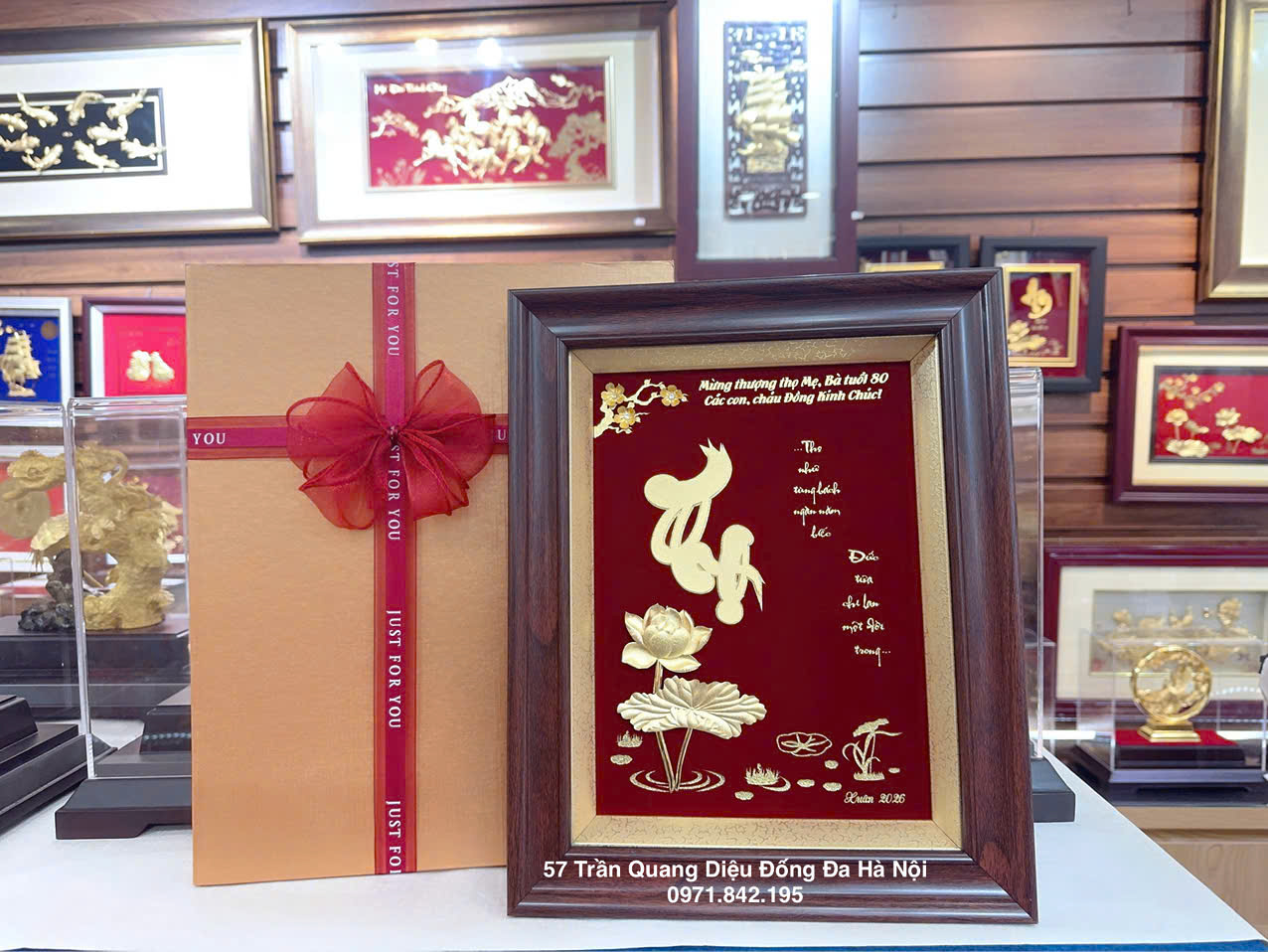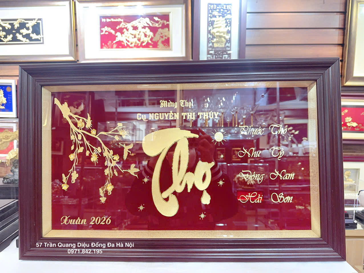 Tranh chữ Thọ dát vàng 24K là món quà phong thủy cao cấp, mang ý nghĩa chúc sống lâu – khỏe mạnh – an khang – viên mãn, rất được ưa chuộng trong các dịp mừng thọ ông bà, cha mẹ, lễ thượng thọ, tân gia, khai trương, chúc Tết.