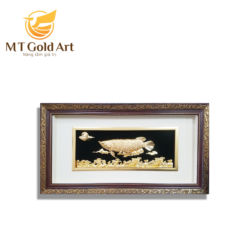 Cá rồng với hình dáng bên ngoài, vẩy to, vây lớn. Người xưa cho rằng chúng giống như những đồng tiền vàng xếp chồng lên nhau. Tranh cá rồng dát vàng là một trong những vật phẩm trang trí được nhiều người ưa chuộng hiện nay. Treo tranh này trong nhà sẽ đem đến nhiều may mắn, tốt lành cho gia chủ. Nhất là đối với những người làm ăn kinh doanh thì tranh cá rồng dát vàng có ý nghĩa đặc biệt giúp công việc kinh doanh luôn thuận lợi, phát tài. Việc bài trí một bức tranh cá rồng dát vàng 3D cũng có ý nghĩa tương tự nên nhiều người chọn giải pháp này, vừa đẹp, vừa sang lại không cần phải tốn thời gian chăm chút. Cá Rồng được ưa chuộng quan tâm săn đón vì cá rồng tượng trưng cho quyền lực, tài lộc và may mắn.