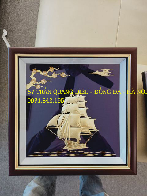 TRANH THUYỀN HOA MAI MẠ VÀNG